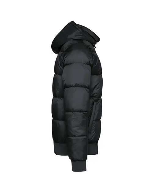 Guler înalt cu glugă căptușită, reglabilă și compartimentată în 3 părți, cu opritor