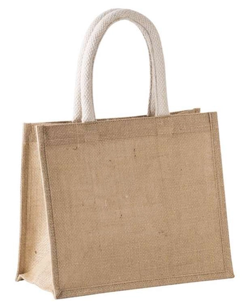Sacoșă din pânză de iută cu mânere din bumbac.