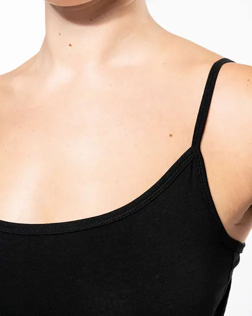 Bretele fine și croială feminină.