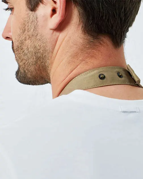Bretea de gât cu cataramă și închidere cu capsă ajustabilă.