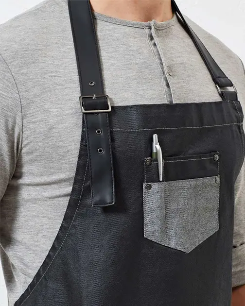 Potrivire stil cu șorțul complet din denim cu aspect cerat PR135 &bdquoDivision&rdquo.