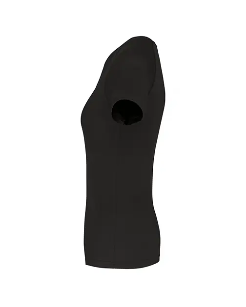 Decolteu rotund cu margine întărită cu bandă contrastantă.