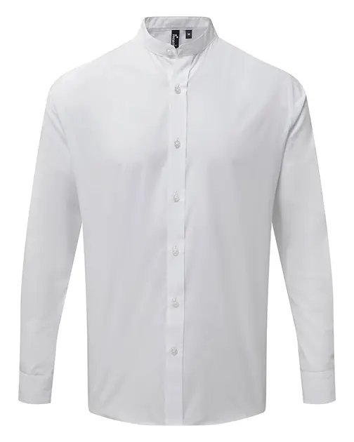 Guler mandarin clasic cu închidere cu nasturi în partea de sus.